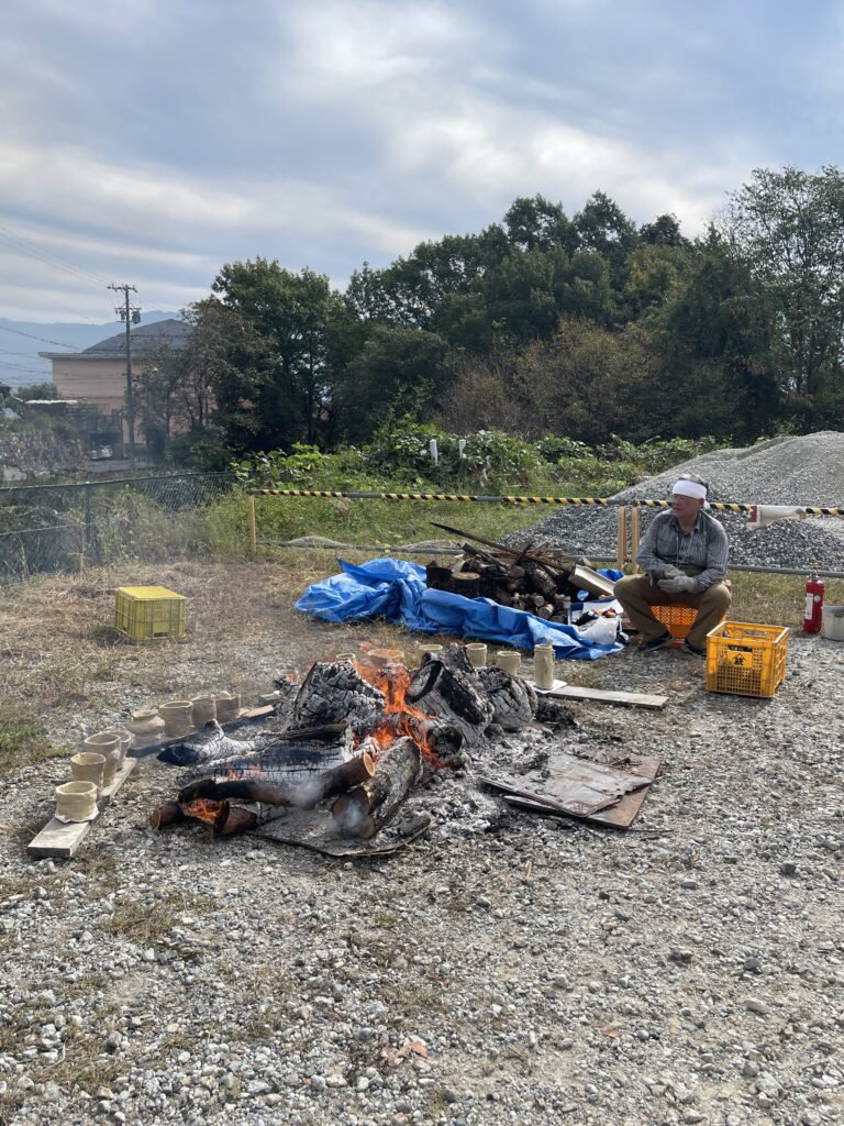 たき火の温度は高く、涼しくなったとはいえ汗をかく作業でした。