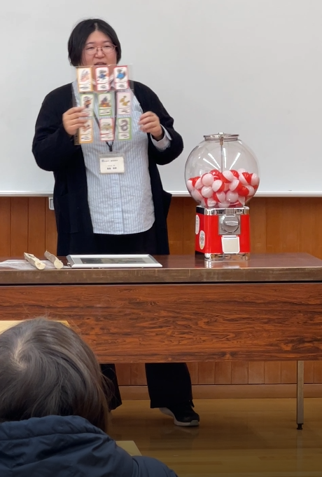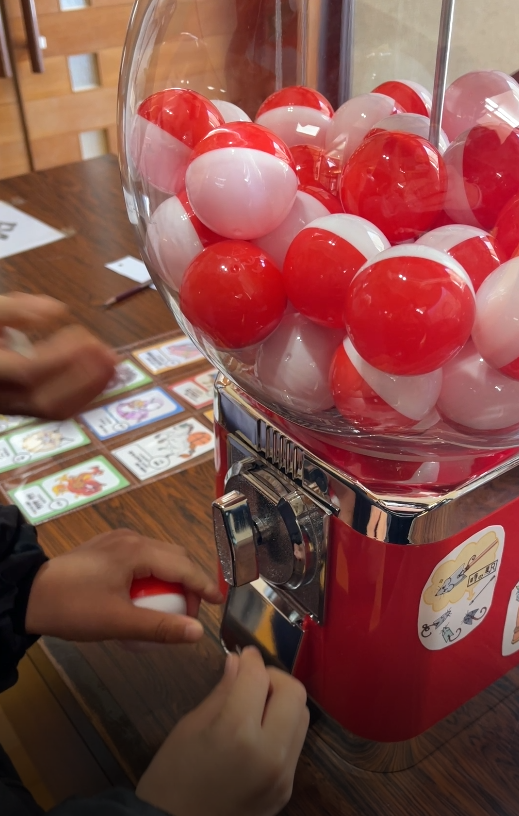 使い方の説明を行い、待ちかねた子どもたちが早速ガチャを回してくれました。