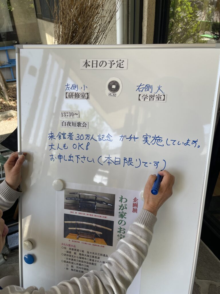 来館者30万人を記念して、本日限定でシールがもらえるガチャを開催しました。