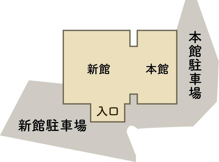 東側の「本館駐車場」をご利用の方は、本館の玄関は締め切りとなっておりますので、ご注意ください。