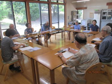 開会に先立ち、童謡・唱歌を斉唱して、皆の気持ちを合わせてから話し合う。